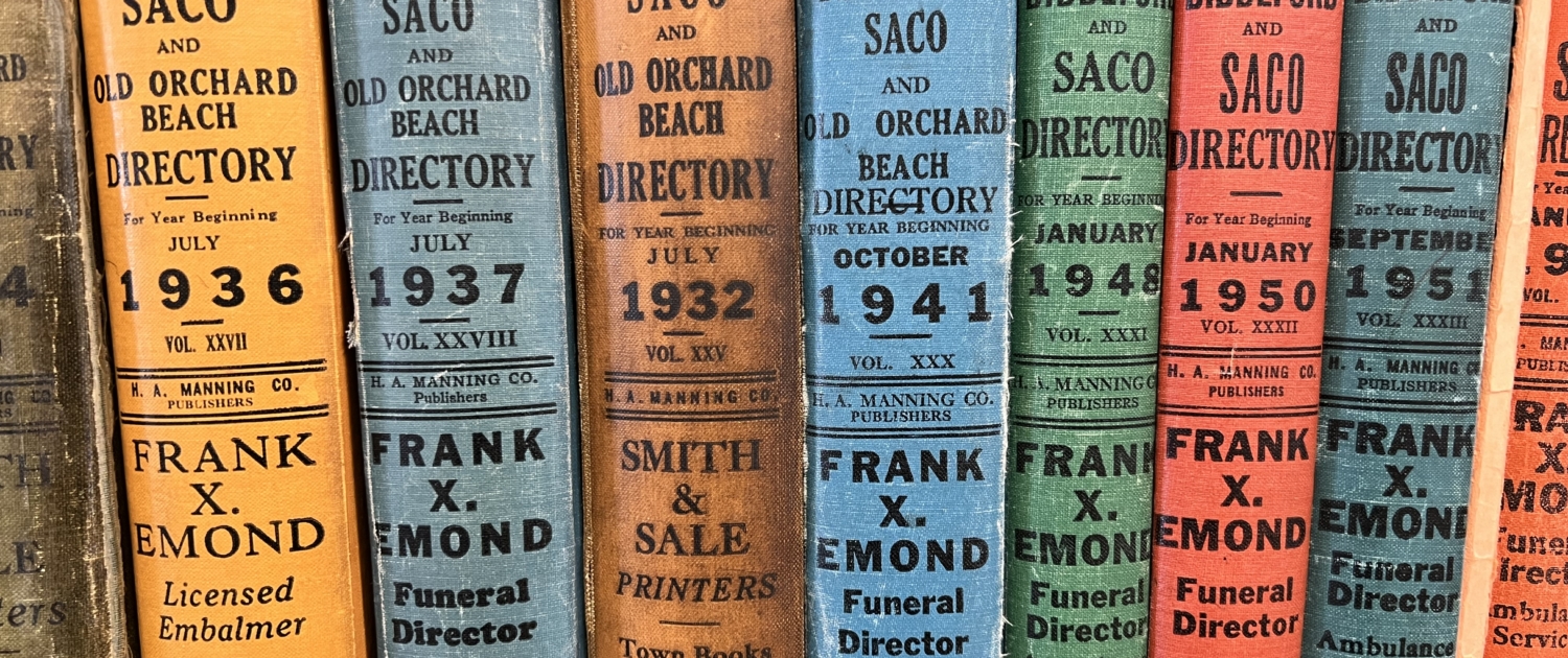 Archives and special collections are housed in the Roy P. Fairfield Maine History Room at the Dyer Library. The collections contain 10,000 manuscripts, historical papers, photographs, and maps of York County and Saco surrounding areas. The Maine History room is a private area in the Dyer Library with public access supported by staff and volunteers. At all times research will be conducted under the supervision of staff or volunteers. Call (207) 283-3861 for more information or email Anatole Brown to make an appointment.